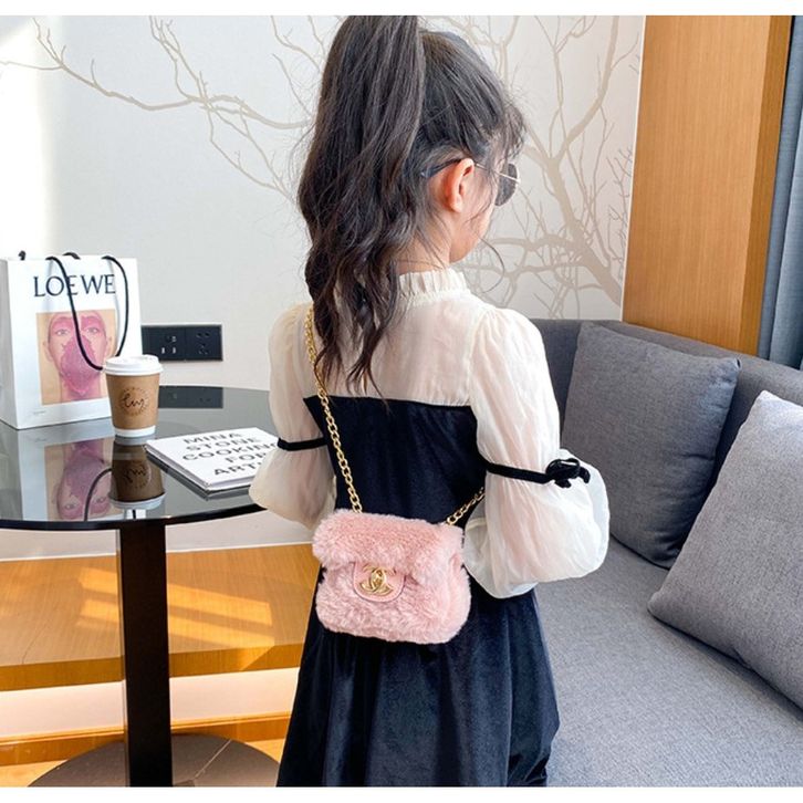 FREE TAS18-Tas Selempang Anak Perempuan Fashion Bulu2 Fur Chanely