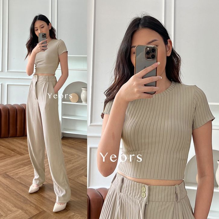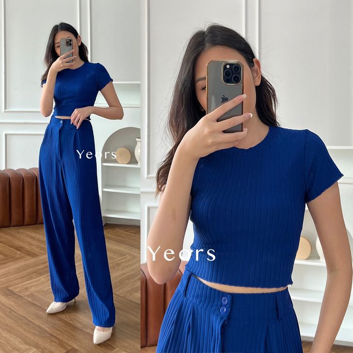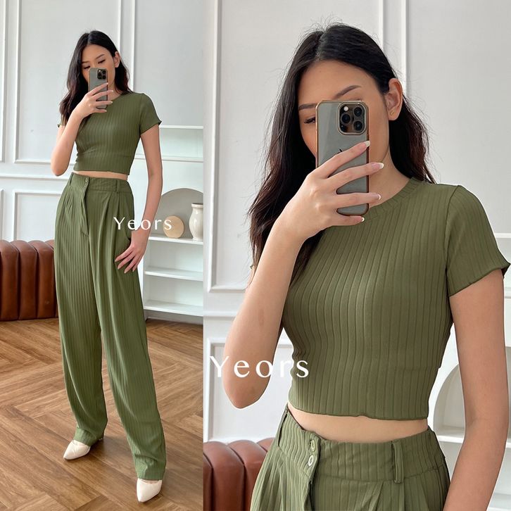 Set Crop Top and Premium Rib Knit Pants Baju Atasan dan Celana Wanita Murah Berkualitas Korean