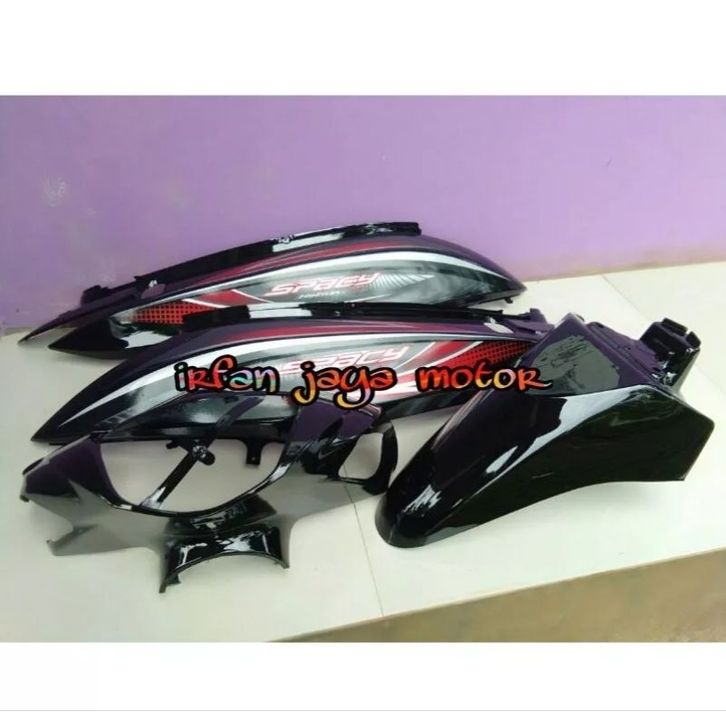 GRATIS ONGKIR cover body satu paket honda spacy putih plus striping cover body motor Original Termurah