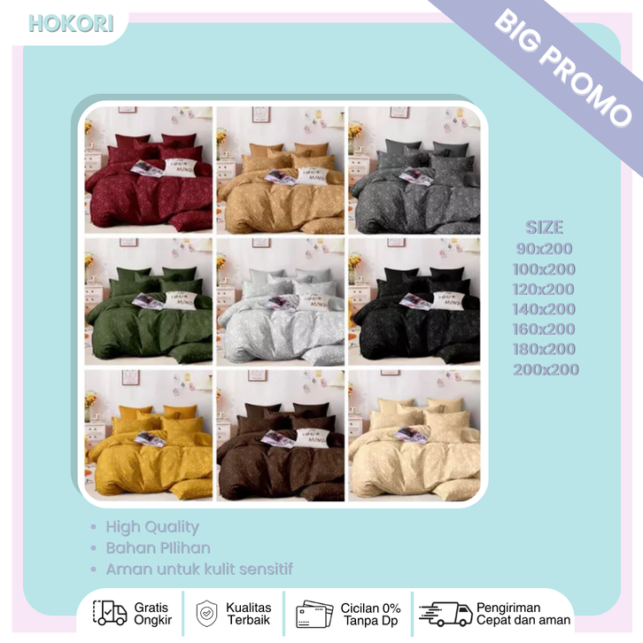 Bed Cover Sprei Set Adem Bahan Halus Lembut Ukuran King 180x200 Queen 160x200 Bedcover Polos Minimalis Kintakun Lite