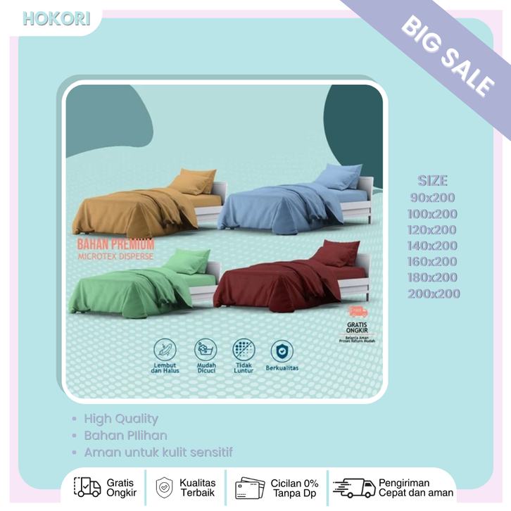 Bed Cover Sprei Set Adem Bahan Halus Lembut Ukuran King 180x200 Queen 160x200 Bedcover Polos Minimalis Kintakun Lite