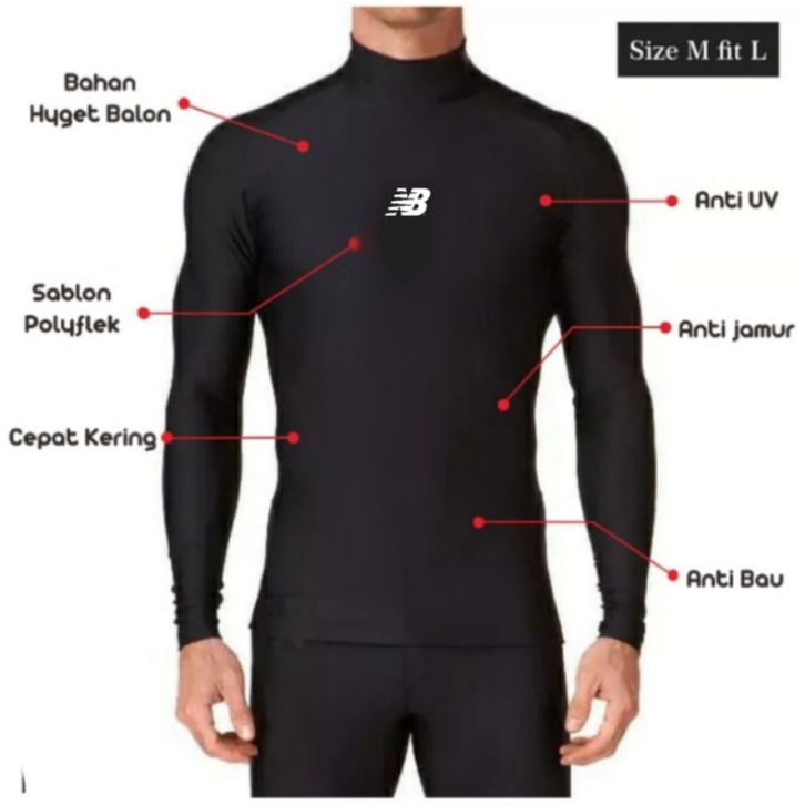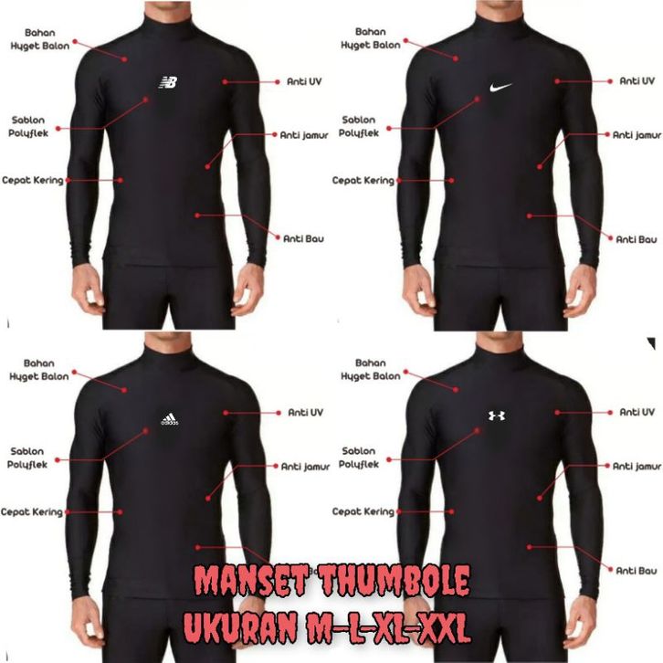 Baju Baselayer Manset Panjang Thumbhole Olahraga Pria Wanita Ukuran M L XL XXL