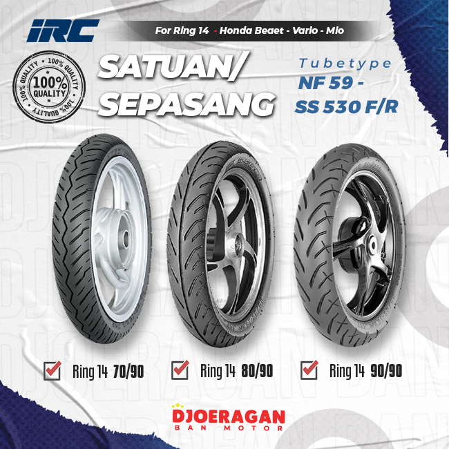 Sepasang / Satuan Ban Luar Motor Matic IRC SS 530 F R Ring 14 70/90 80/90 90/90 Depan Belakang Vario Beat Tubetype