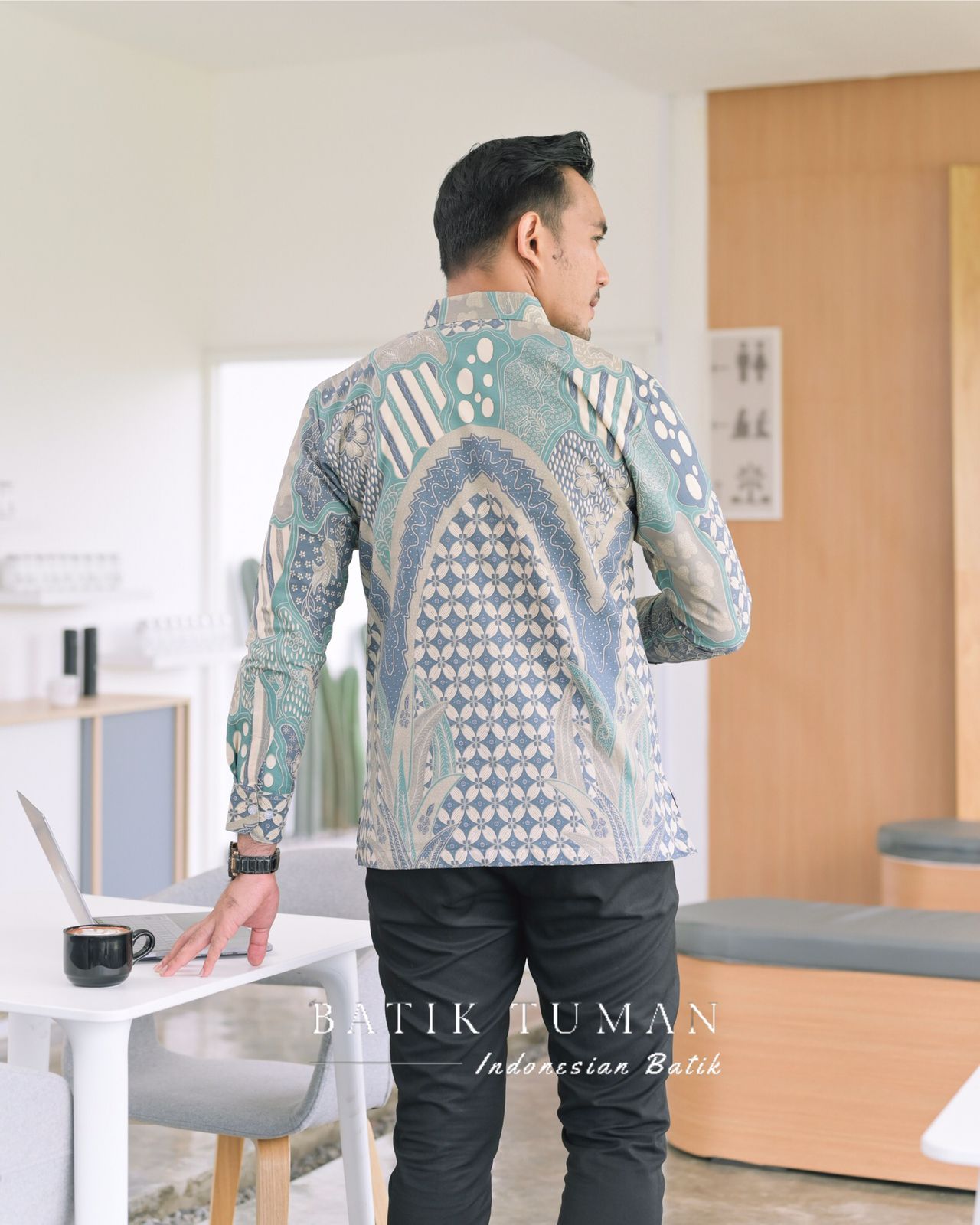 KAWUNG PASTEL Kemeja Batik Pria Lapis Furing Bahan Katun Halus Primisima Warna Biru Navy Pastel