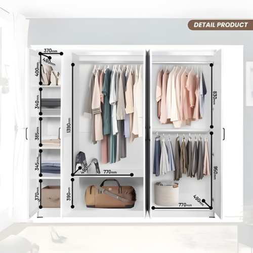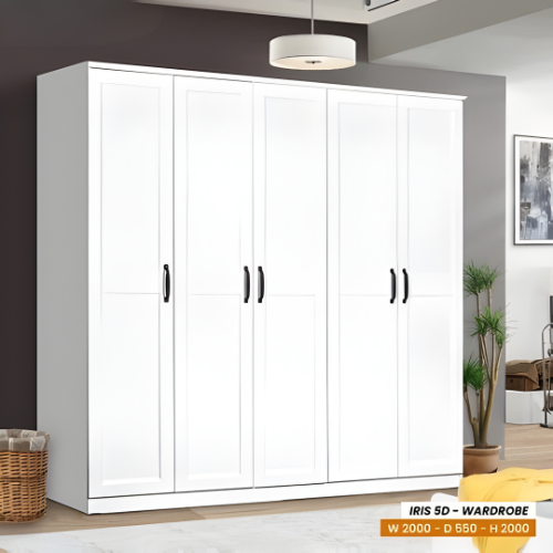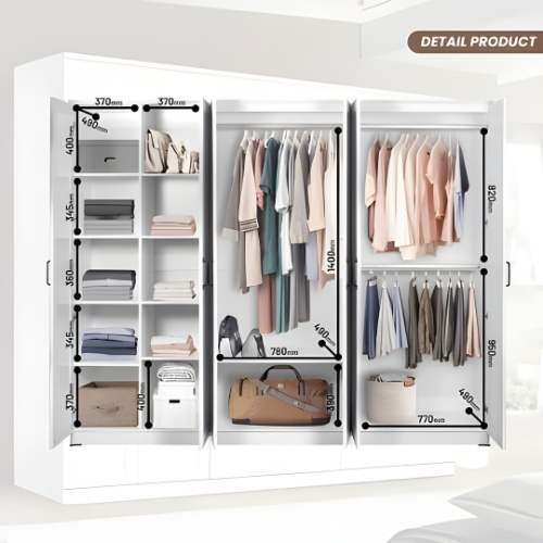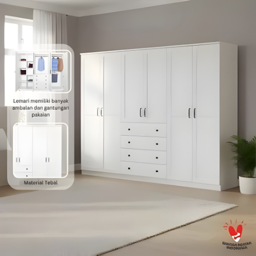 LEMARI PAKAIAN BAJU GANTUNG GAMIS JUMBO 7 5 4 PINTU SCANDINAVIAN WHITE PARTICLE BOARD MDF TAHAN AIR ANTI RAYAP