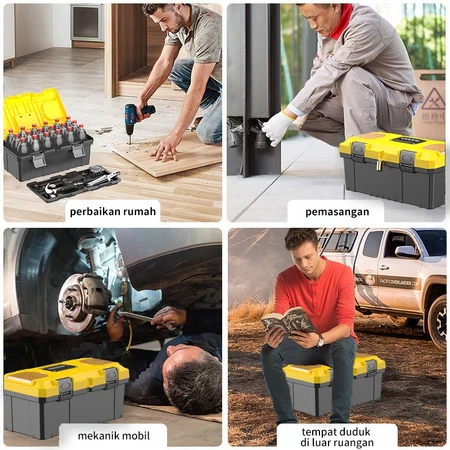 KOTAK PENYIMPANAN SERBAGUNA TOOL BOX BESAR 20 17 14 INCH BAHAN PP SET LENGKAP 2 LAYAER PERALATAN PERKAKAS KUNCI MURAH