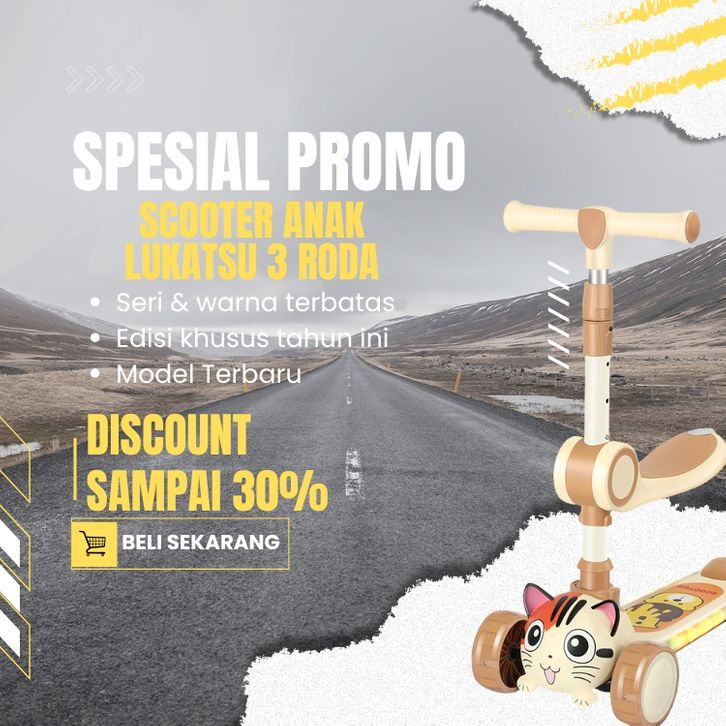 SKUTER ANAK 3 TAHU LUKATSU 3 Roda Bisa Dilipat Dengan Lampu Dan Musik Skuter Harimau Skuter Anak Laki-laki Dan Perempuan