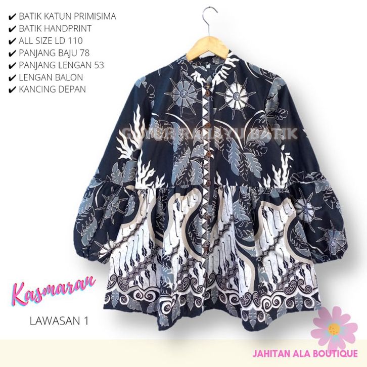 Atasan Batik Wanita Jumbo LD 120 130 140 Katun Halus Busui Full Kancing Depan