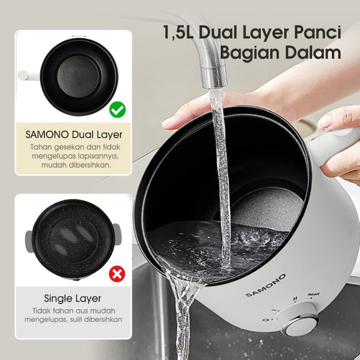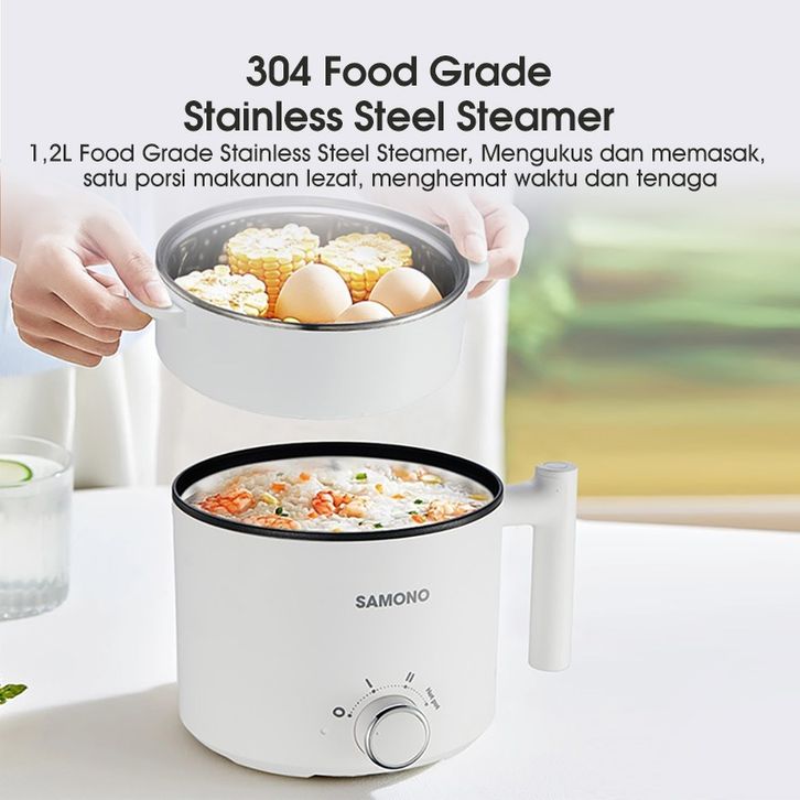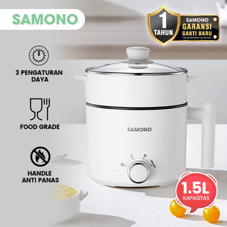 SAMONO Panci Listrik Kukusan 1.5 Liter Stainless Steamer 150 Watt Dengan Kukusan Tutup Kaca SW-DG04S