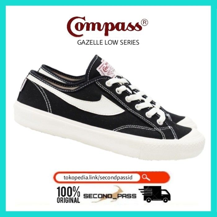 SEPATU COMPASS GAZELLE LOW BLACKGUM/CREAM/BLACKWHITE [ ORIGINAL ] - BLACKWHITE, IKLAN