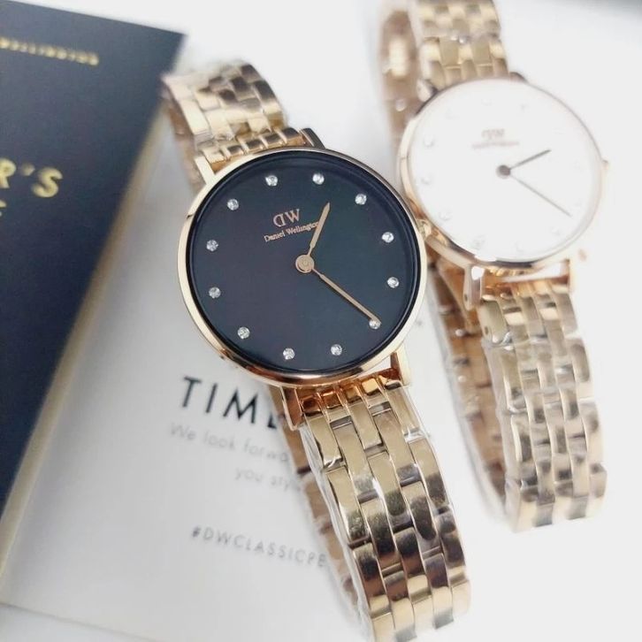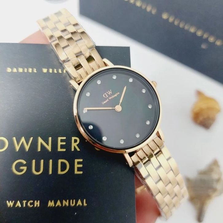 JAM TANGAN WANITA DANIEL WELLINGTON Petite Lumine ROSEGOLD DIAL BLACK STAINLESS STEEL ORIGINAL-FREE ONGKIR