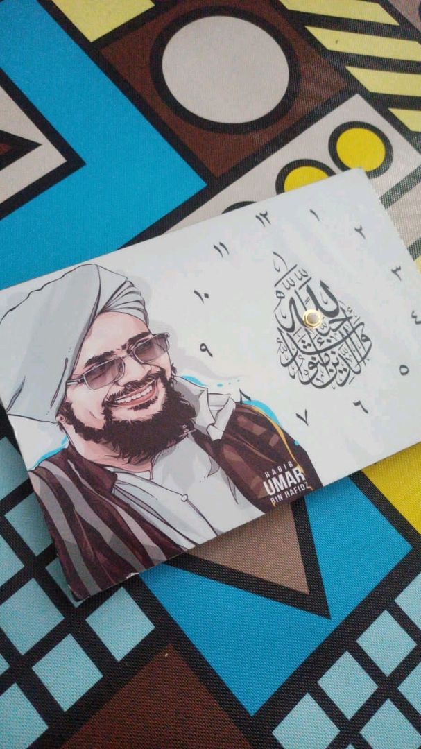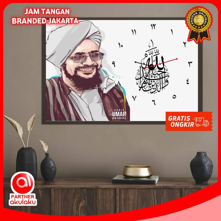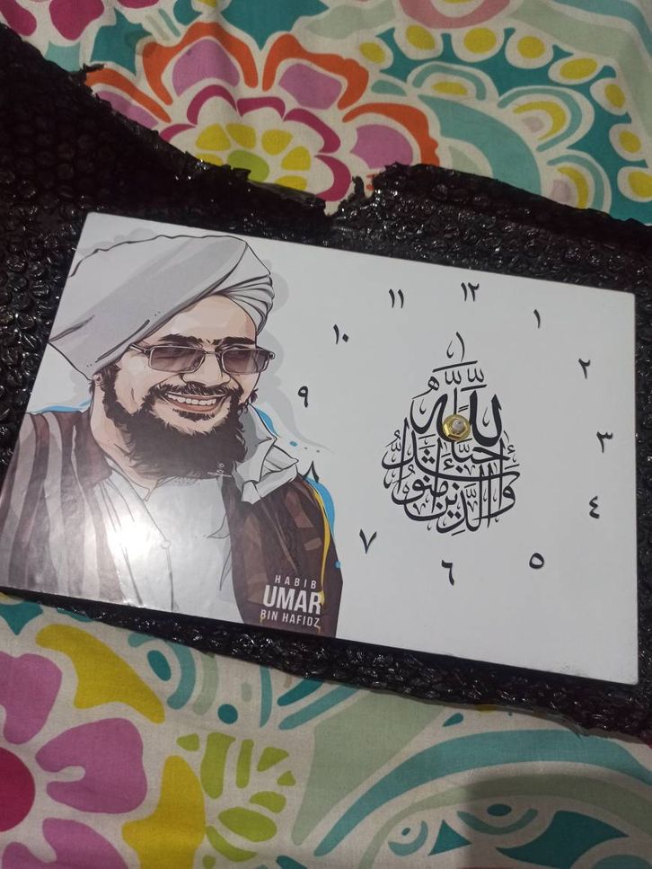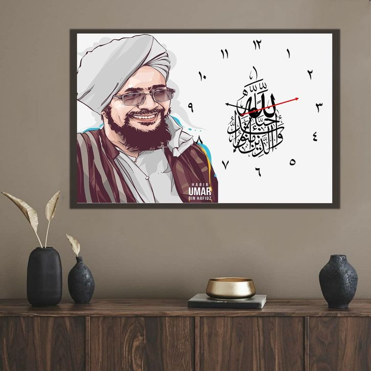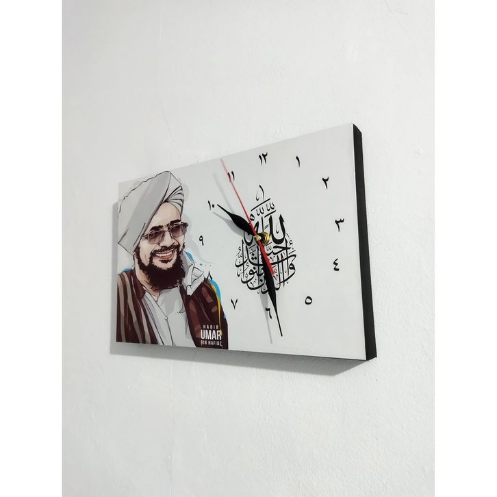 Jam Kaligrafi Dinding Tulisan Arab Foto Habib Syech HD Tempel Tembok Dekor Ruang Tamu Estetik Bahan Kayu MDF Berkualitas