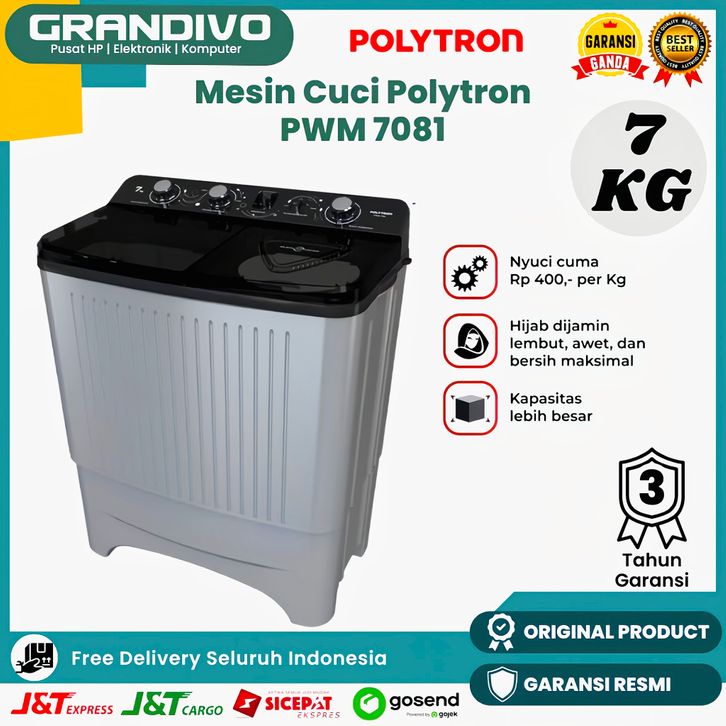 MESIN CUCI 2 TABUNG POLYTRON 7 KG PWM-7081Y / PWM 7081Y Garansi Resmi - Grandivo