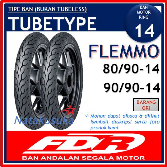 [Paket Hemat] Ban Motor Genio Beat Scoopy Fino Vario 125 / 150 Ban Luar FDR Flemmo Tubetype (TT) 80/90 & 90/90 - 14