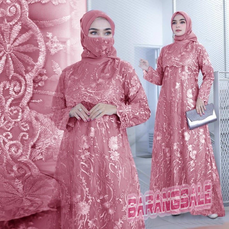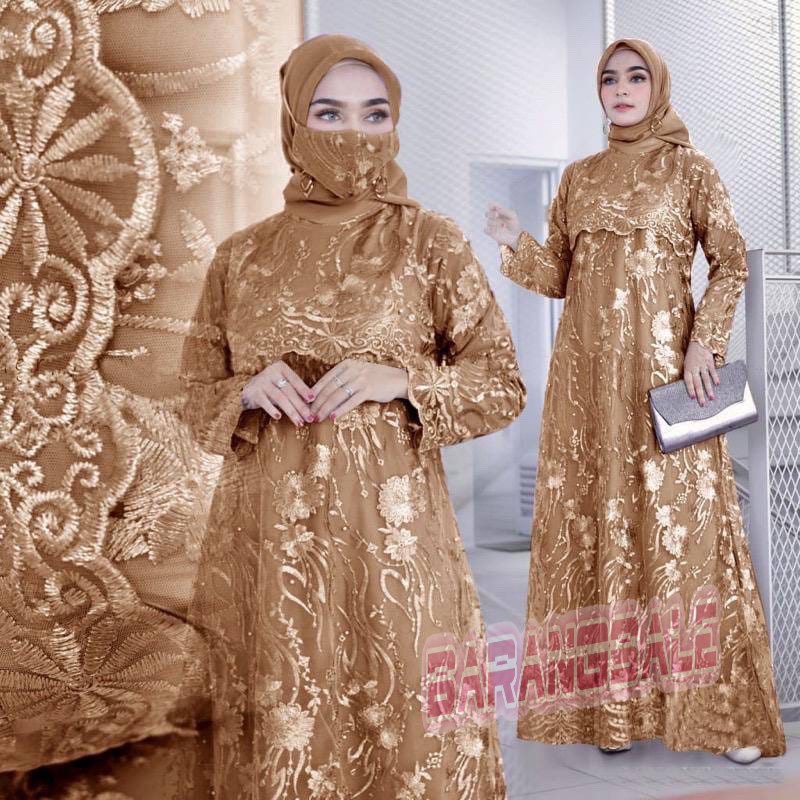 MAXI SONAYA (M L XL XXL) GAMIS FULL BRUKAT TILE MUTIARA DEPAN BELAKANG GAMIS PESTA BRIDESMAID FASHION BROKAT KONDANGAN
