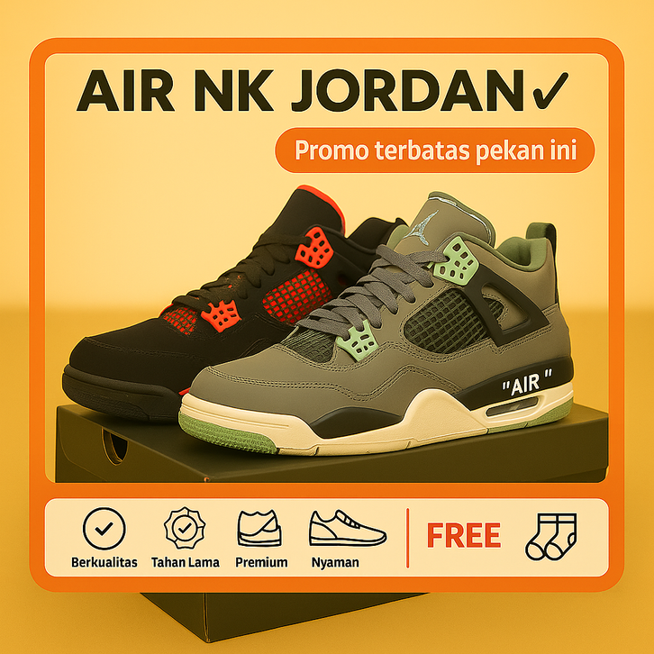 SEPATU JORDAN ORIGINAL DEWASA PRIA WANITA NK AIR 4 GREY TOSCA TERBARU - SEPATU CASUAL OFFICIAL STORE BEST SELLER 2025