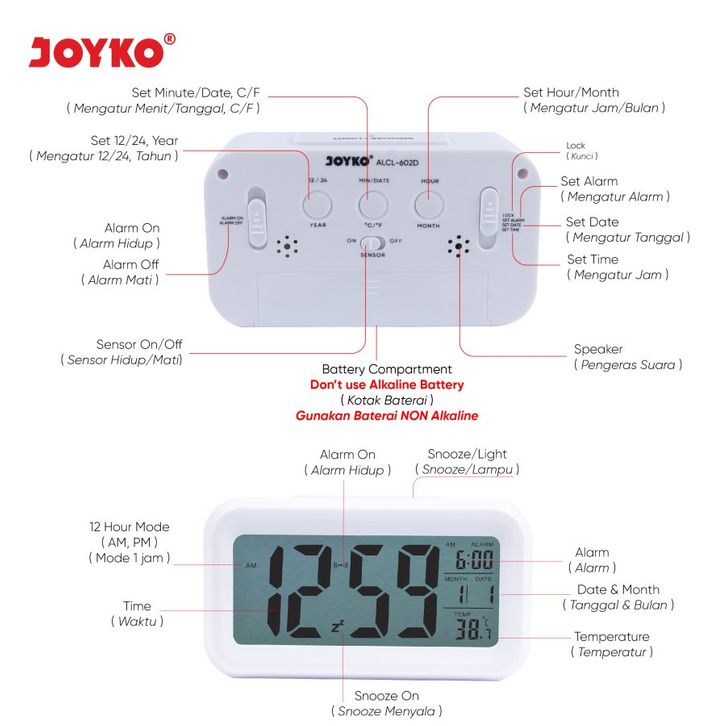 Jam Alarm Digital Weker Dering Clock Tampil Suhu Joyko Original Warna Putih Bisa Untuk Kamar Tidur Trending