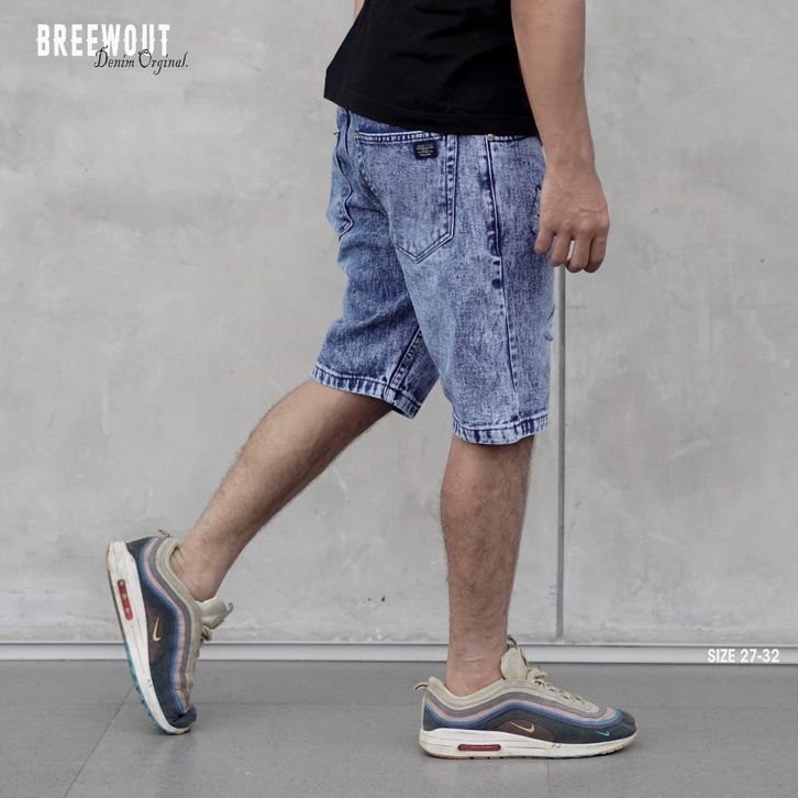 Celana Jeans Pendek Snow Wash Pria Casual Original BREWOUT