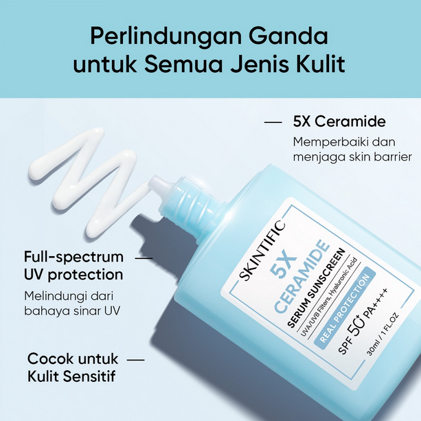 SKINTIFIC 5X Ceramide Serum Sunscreen 30ml SPF50 PA++++ Tabir Surya Skincare Sunblock UVA/UVB