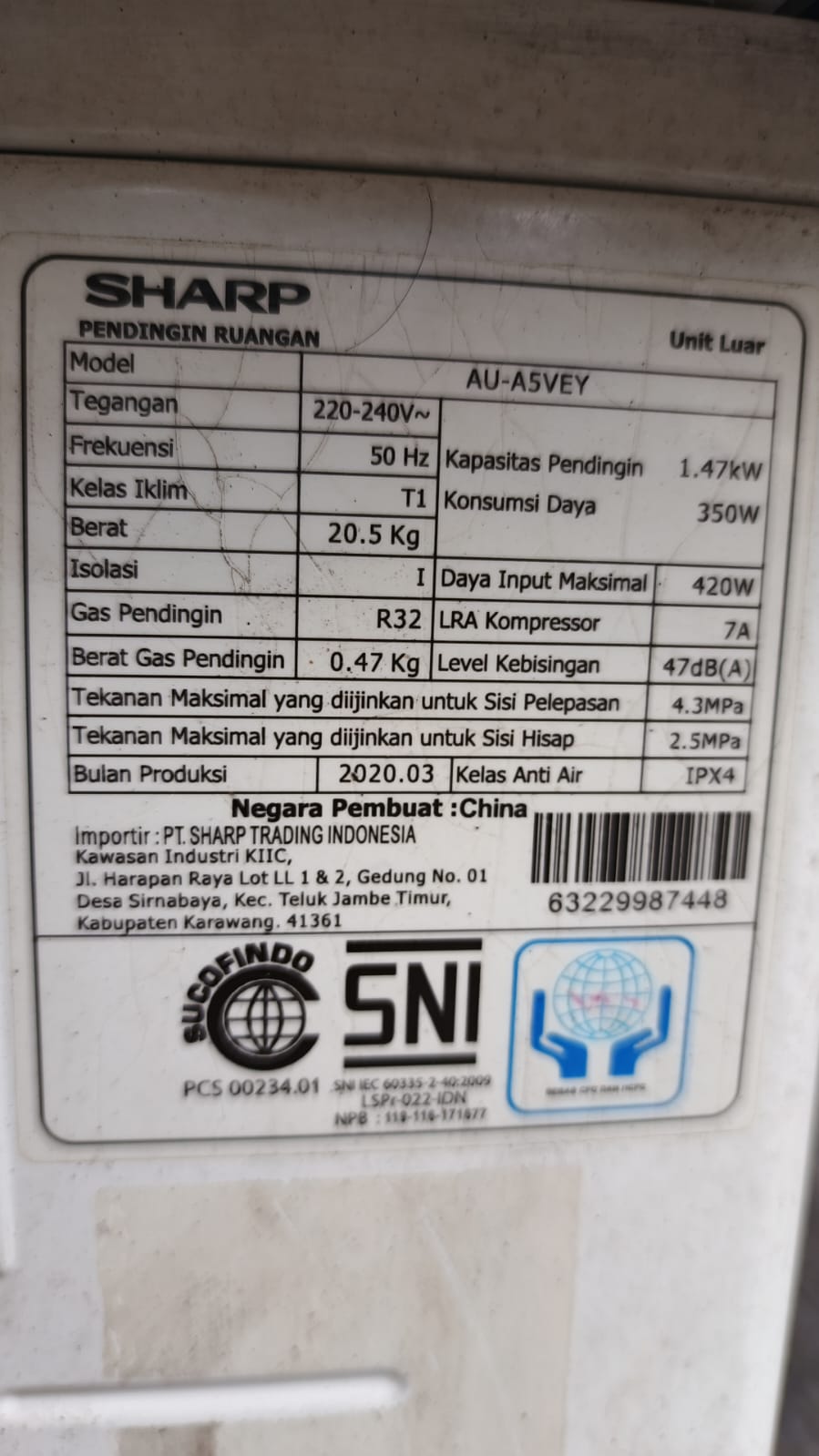 AC Sharp 1/2 PK R 32 second + pasang free ongkir jabotabek