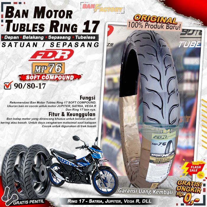 ban motor tubles fdr sport mp76 ring 17 tubles ban motor depan belakang bebek satria fu ring 17 tubles tubeless