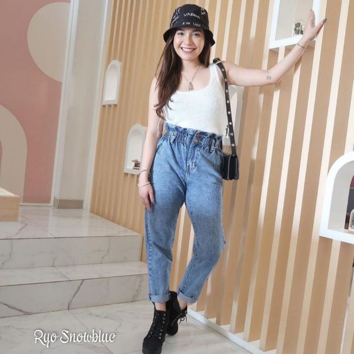 Baggy Jeans Celana Jean Plain Pacar Bf Polos Ada Saku Kanan Kiri Aktif Fashion Wanita Cewek Kekinian dan kece