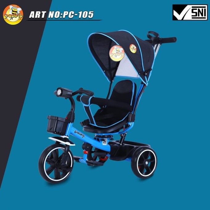 Sepeda Roda Tiga Anak Pacific 105 Stroller Headlight Duduk Rebah Hadap Depan Belakang