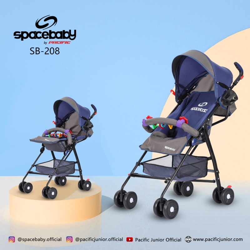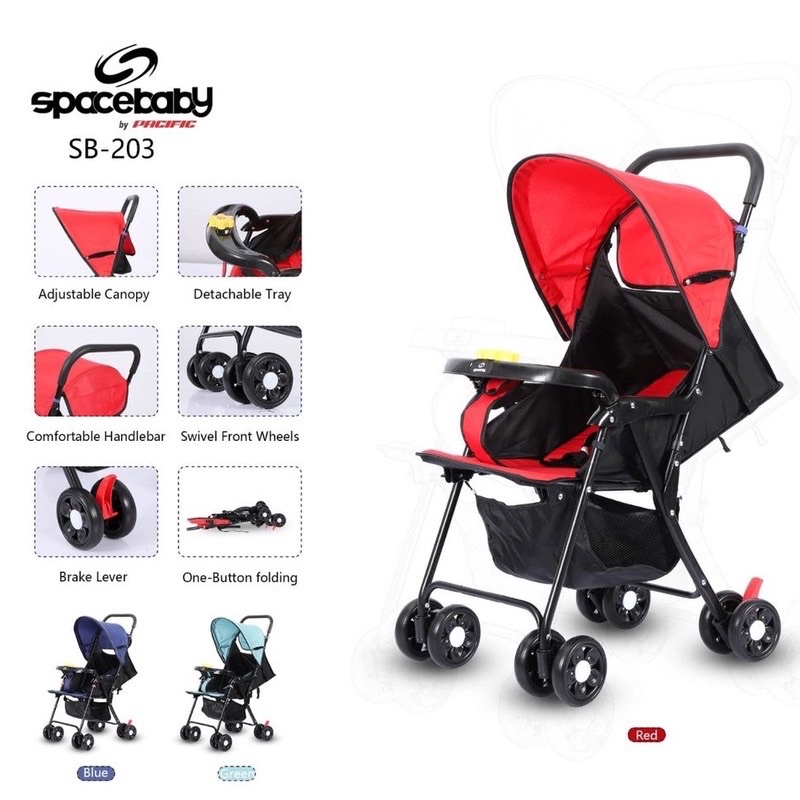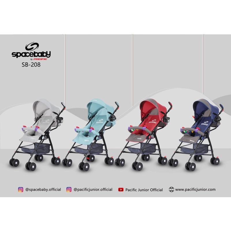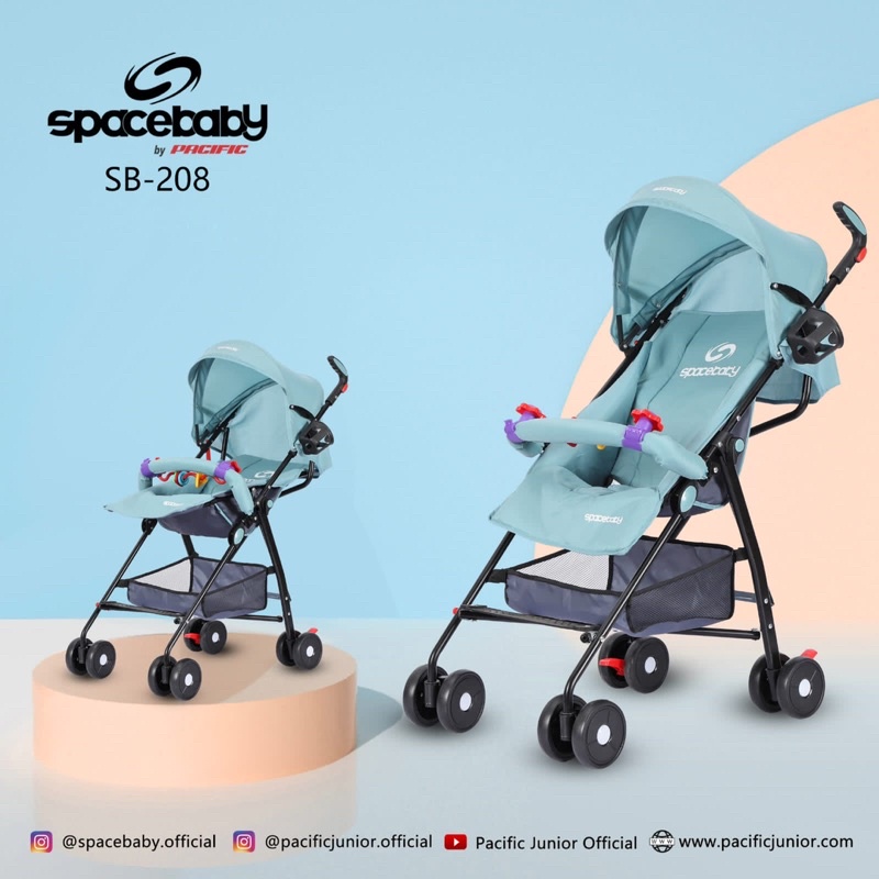 Kereta Dorong Bayi Spacebaby SB203 Pengaturan Posisi Sandaran Safety Bar w Cross Belt Baby Stroller