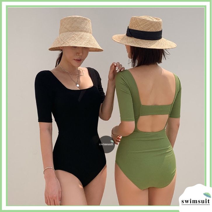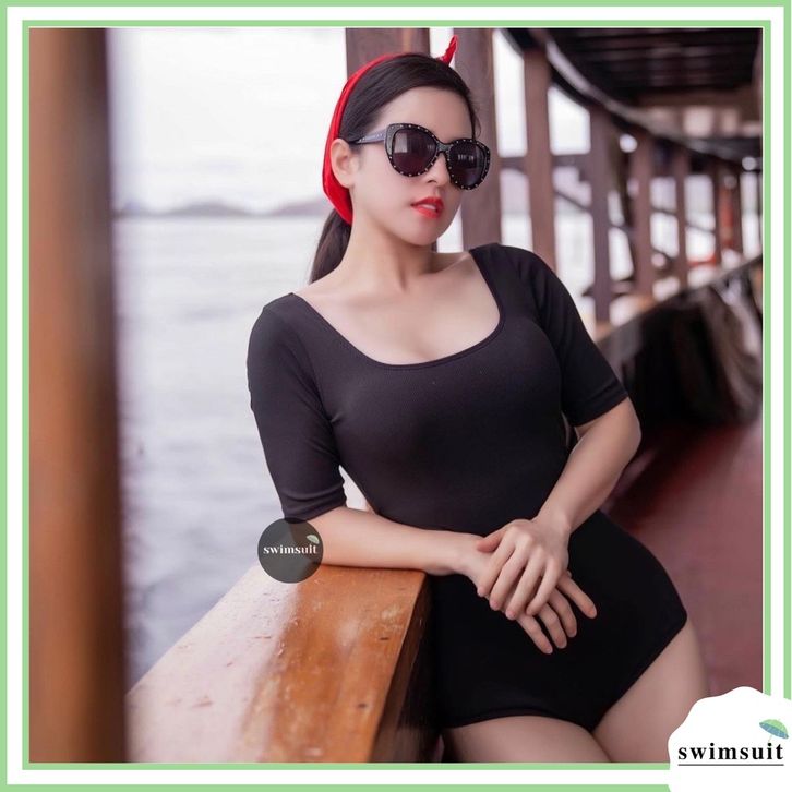 Swimsuit Baju Renang Wanita Big Size One Piece Model Lengan Pendek Fashion 8023