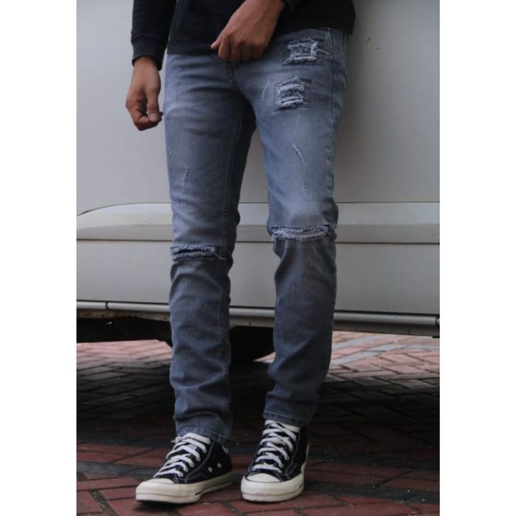 Celana Jeans Cowok Panjang Sobek Lutut Pria Celana Panjang Jeans Pria Model Sobek Fashion Distro Terlaris dan Viral