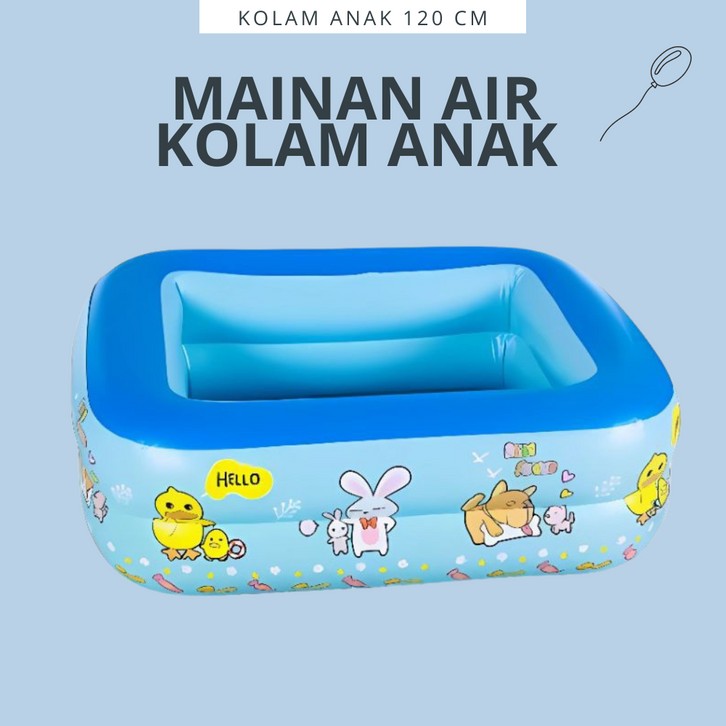 KOLAM RENANG ANAK KOTAK RECTANGLE CRYSTAL POOL 120X90X36 CM - KOLAM KARET KOTAK A1030 ALAS GELEMBUNG