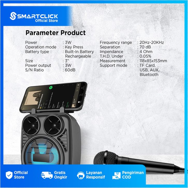 Speaker Portable Bluetooth LED 3 Inches Mobile Phone With Mic