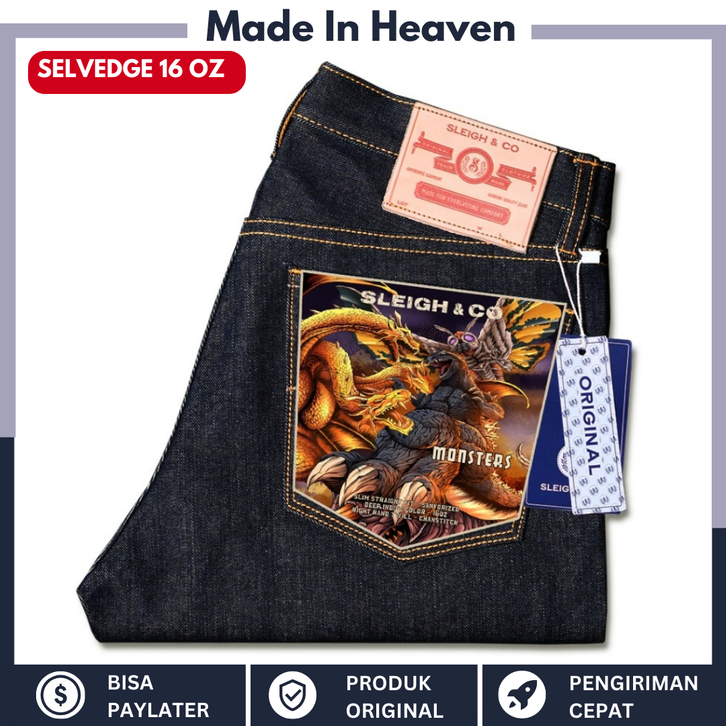 Celana Denim Selvedge Sleigh & Co - Monsters 16oz Kaku Accent - Extra Black Indigo 17Oz 20Oz
