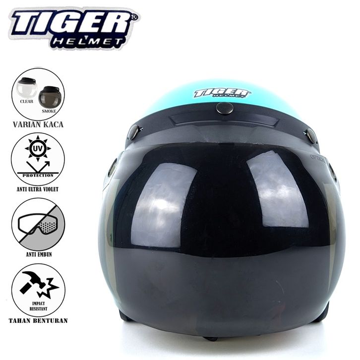 Tiger Helmet Helm Bogo Retro Dewasa SNI List Classic Polos Free Aksesoris Kaca Cembung