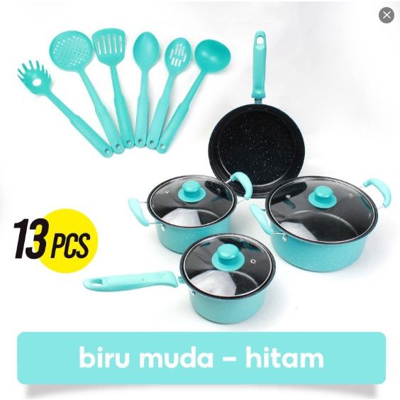 (BEBAS ONGKIR) TERBARU Panci Set Wajan Penggorengan Spatula Set Isi 13Pcs 1 Set Frypan Saucepan TERMURAH TERLARIS