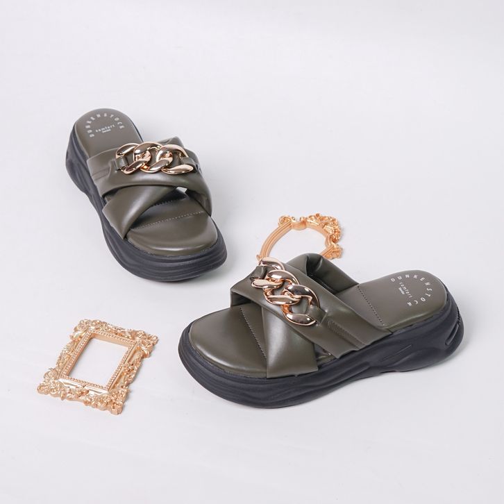 Dunkenstock CHARLEE Sandal Wanita Terbaru Bahan Karet Tinggi 5cm Kekinian