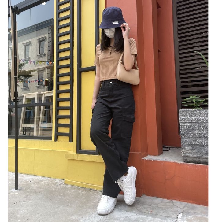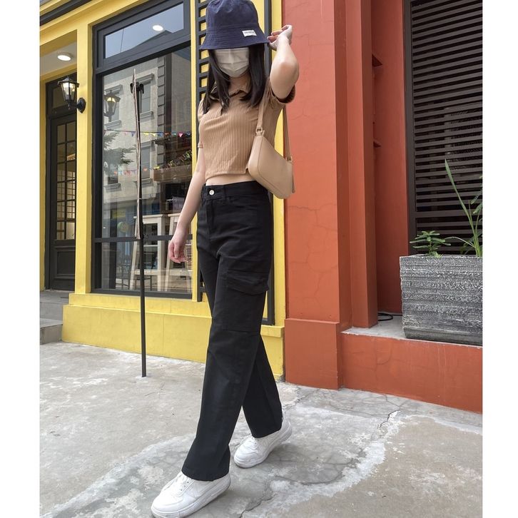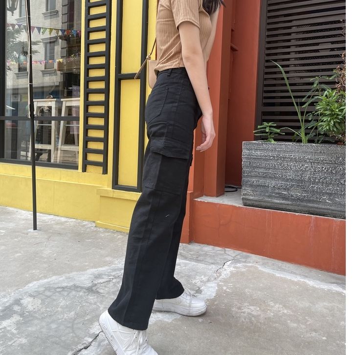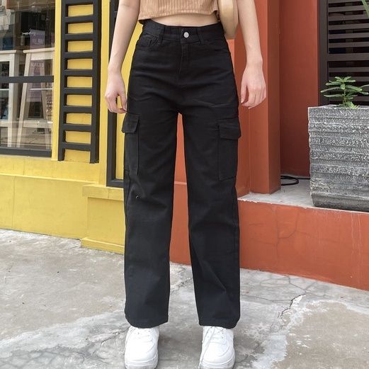 CELANA CARGO CEWEK DEMORIN - CELANA JEANS WANITA HIGHWAIST CARGO JEANS X56 - CELANA CARGO WANITA