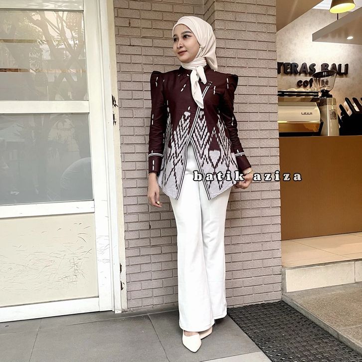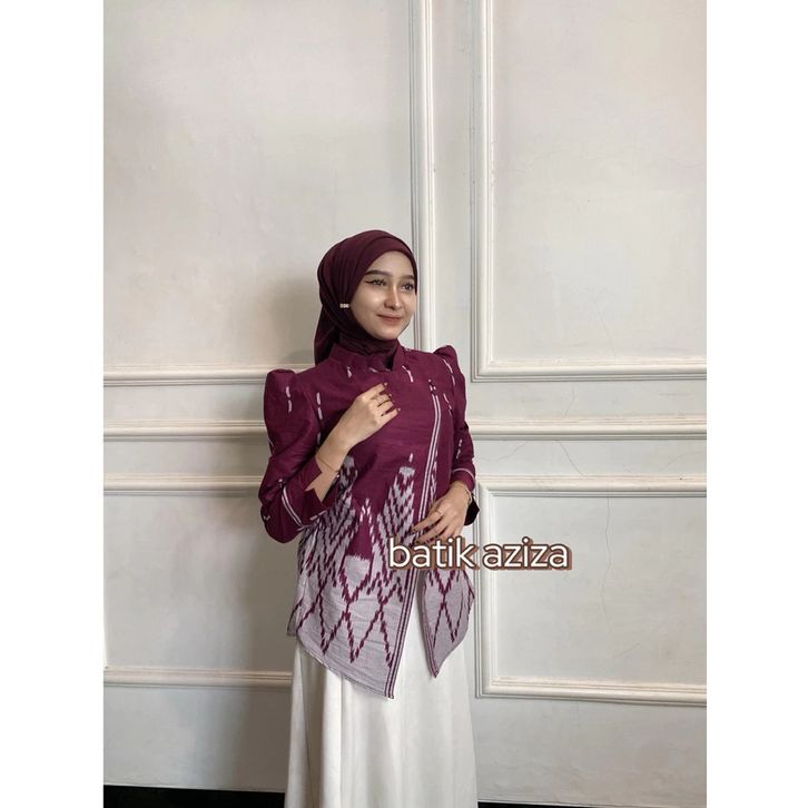 BATIK AZIZA- Atasan Batik Wanita Kebaya Janggan Motif Songket Lengan Panjang Bahan Katun TEBAL - Baju Batik Elegan