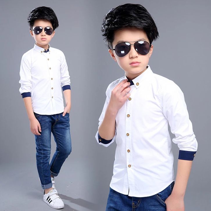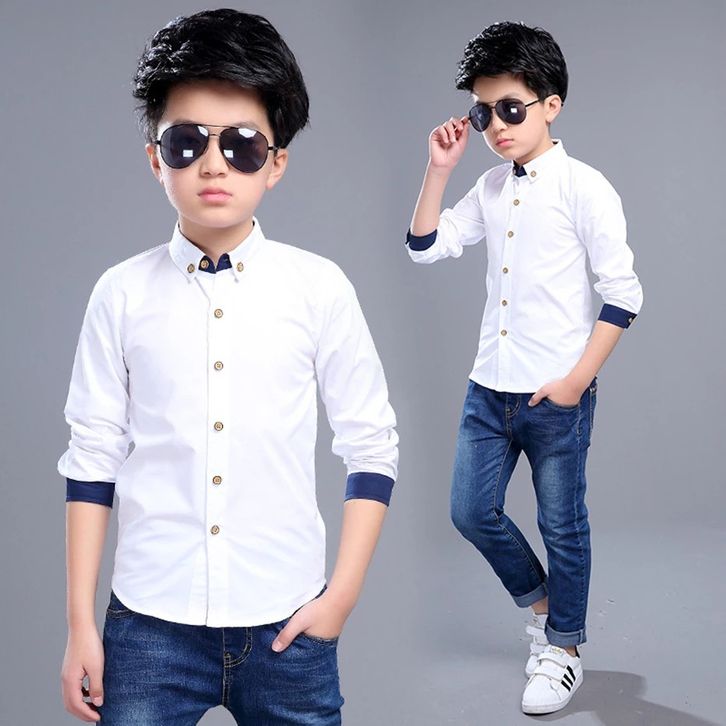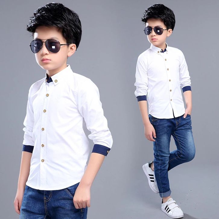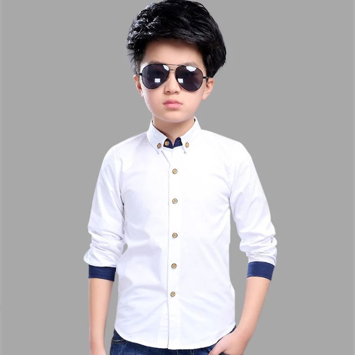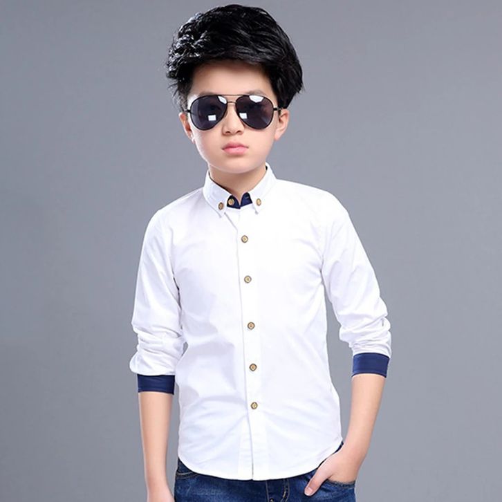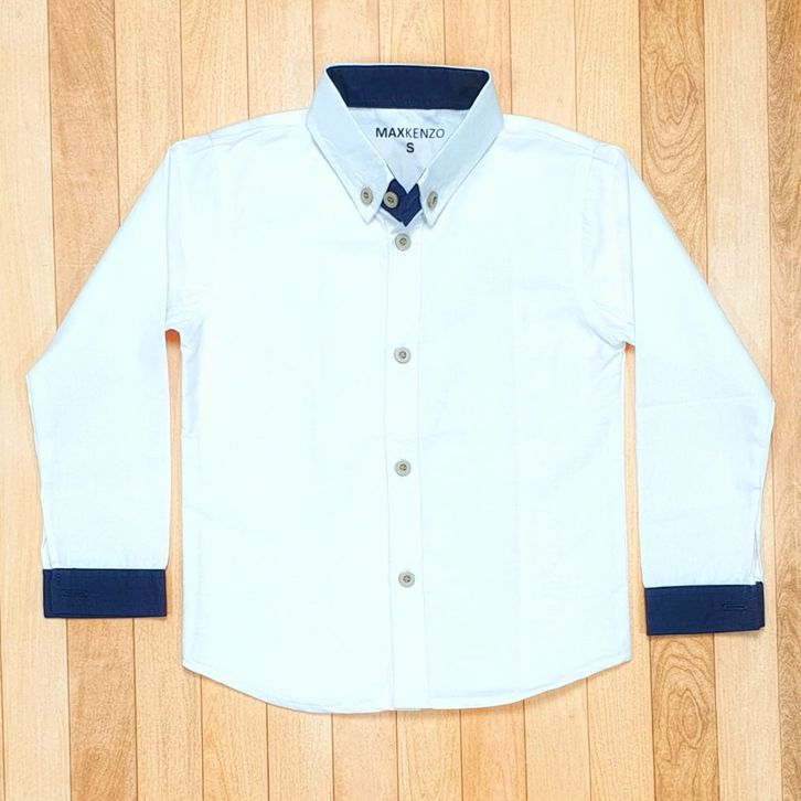 Maxkenzo Kemeja Putih List Dongker 1 - 15 Tahun Kemeja Polos Panjang Baju Anak BerKualitas