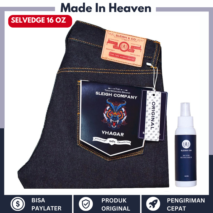 Celana Denim Selvedge Sleigh & Co - Vhagar 16oz Kaku Accent - Extra Black Indigo 17Oz 20Oz