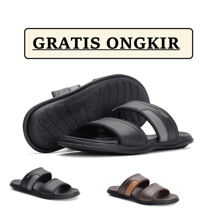 KGMN Sandal Pria Casual Kekinian Bari Sendal Slide Hangout Cowok Kulit Kualitas Import - BR200