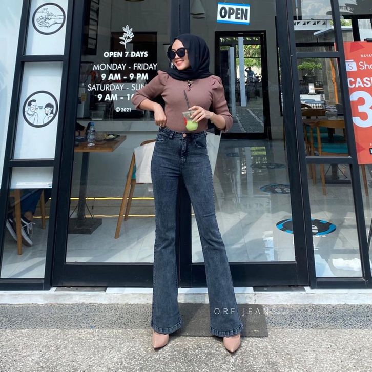 ORE - HW CUtbray Basic Panjang Snow Black Jeans Strecht - Cutbray Panjang Wanita Terbaru