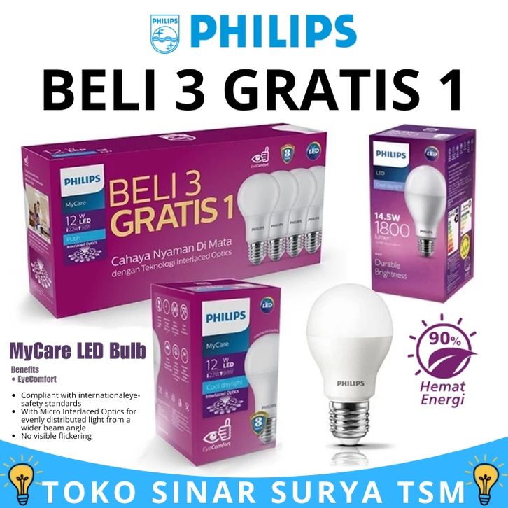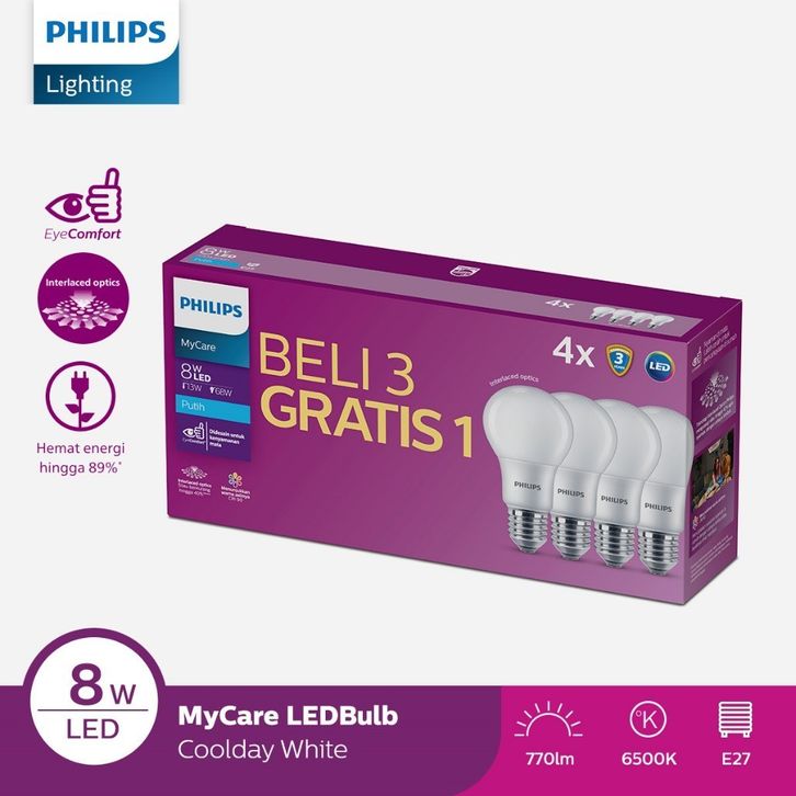 Lampu Philips - Lampu Philips led - 4 PCS Lampu philips 8W/10W 12W/14.5W.multipack lampu led rumah - DISKON 30%
