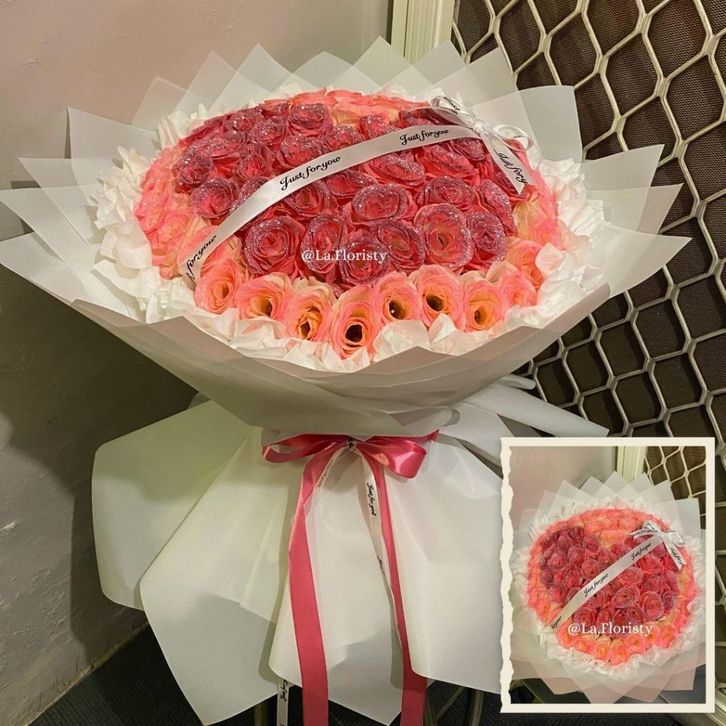 BUKET BUNGA 75 tangkai | BUKET BUNGA PREMIUM | ROSE BOUQUET | BUNGA ARTIFICIAL GLITTER -NO GLITTER BUKET BUNGA VALENTINE