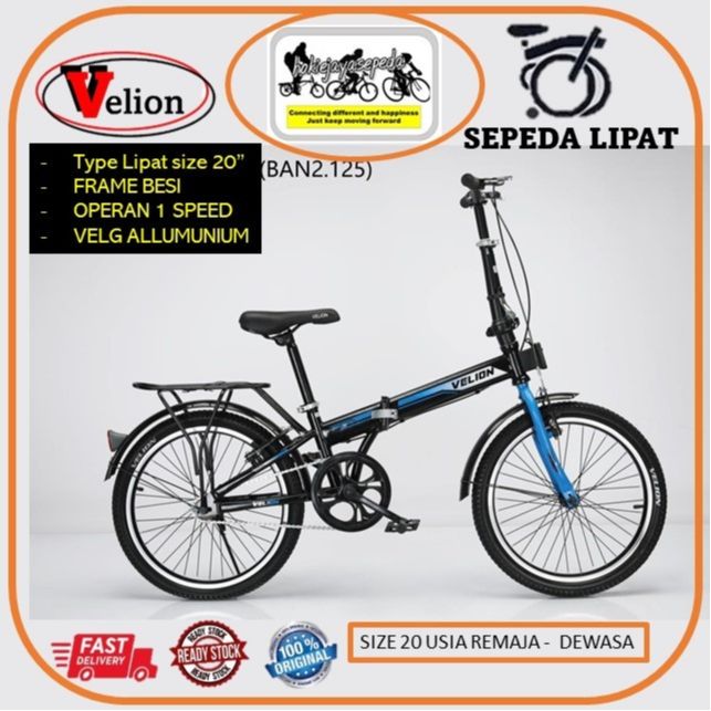 Sepeda Lipat Velion Single Speed Folding Termurah Untuk Remaja - Dewasa Bonus Busa Jok