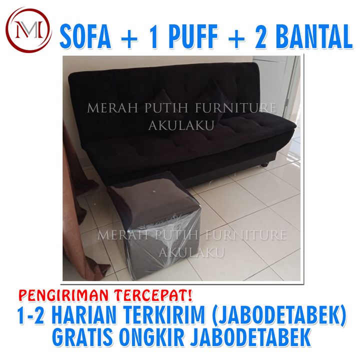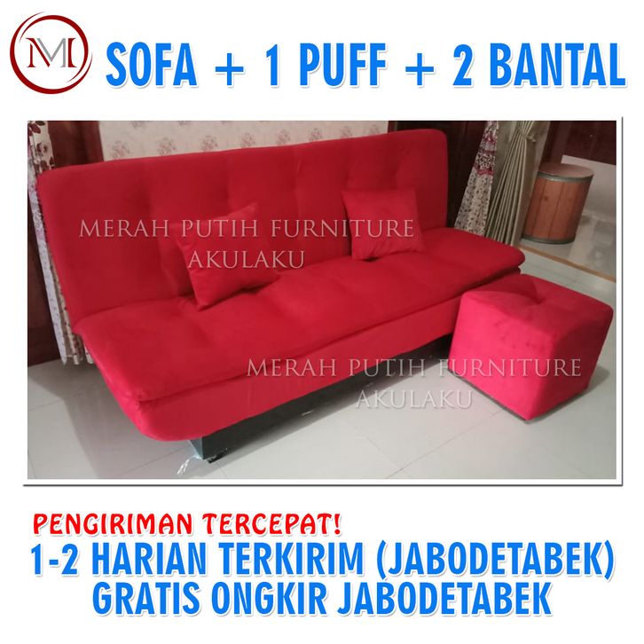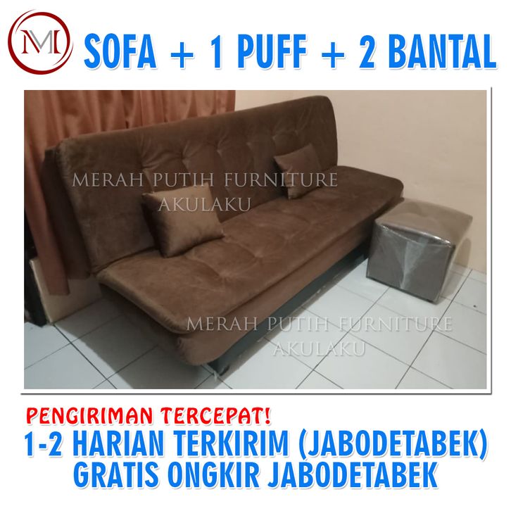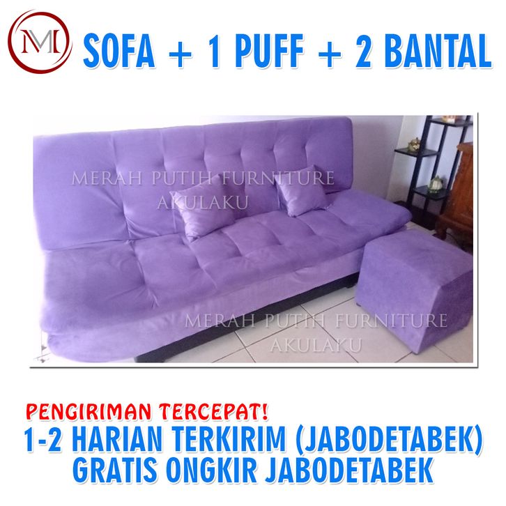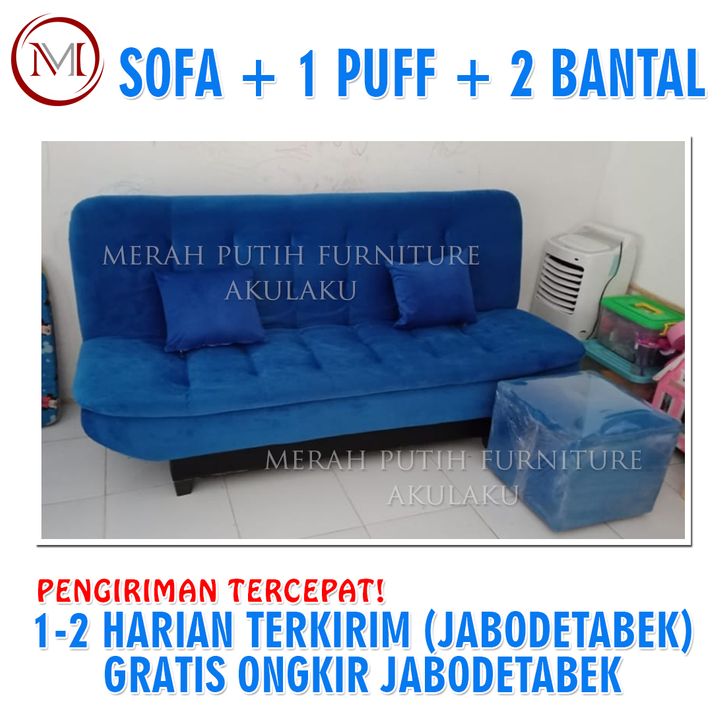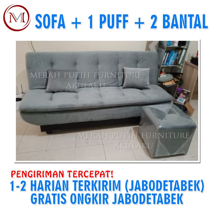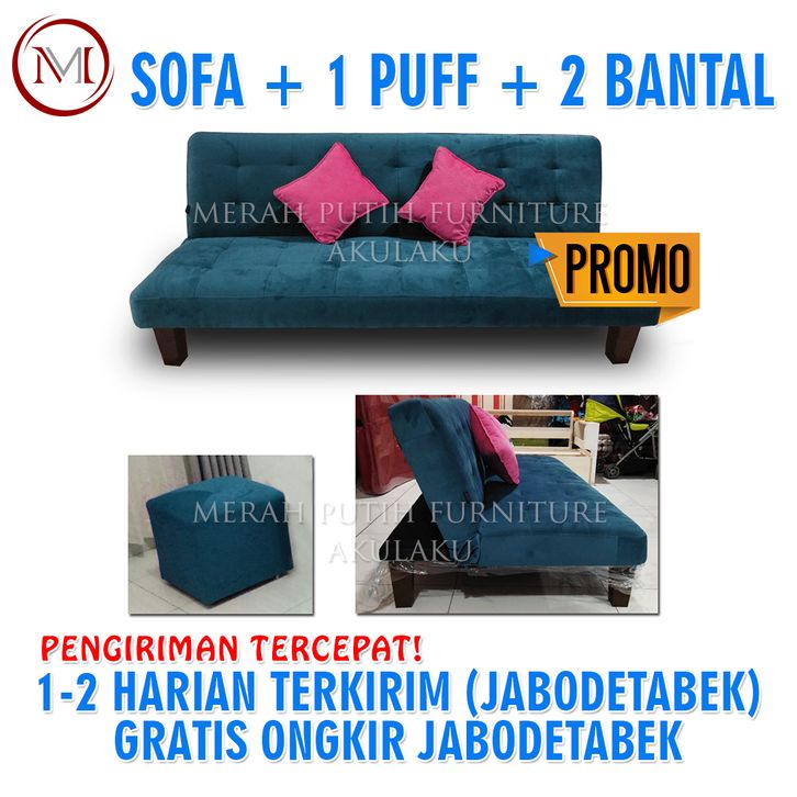 Sofa Bed Minimalis Pilowtop | 1 puff + 2 Bantal | Bludru. Bisa pilih warna. Pengiriman tercepat. Sofa Tidur/Sofa Lipat