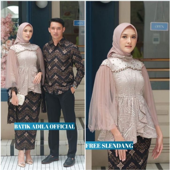 Kebaya Couple Modern Baju Wisuda Tunangan Lamaran Baju Batik Brokat Couple Vanila Dres Kodangan