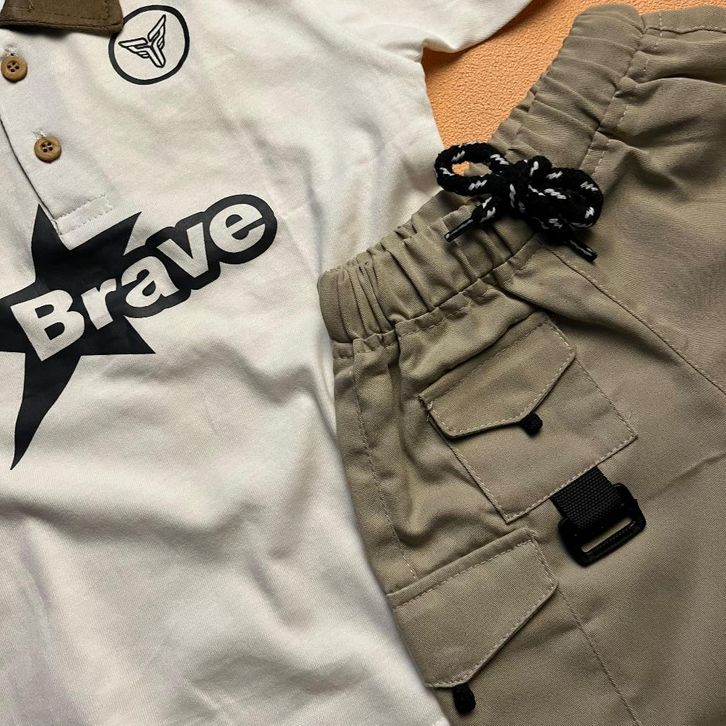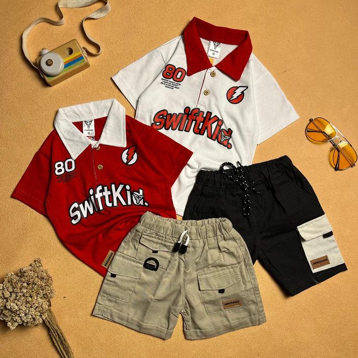 Setelan Anak Laki Laki Umur 1-5 Tahun T-Shirt & Celana Katun Drill Cargo Combed Baju Kaos Anak Cowok Bahan Nyaman Murah