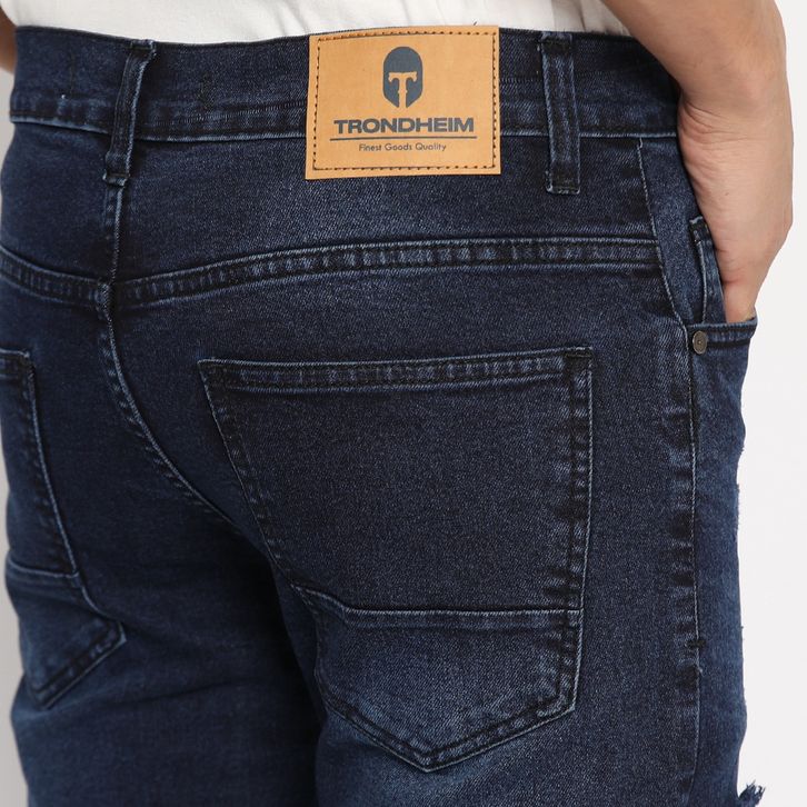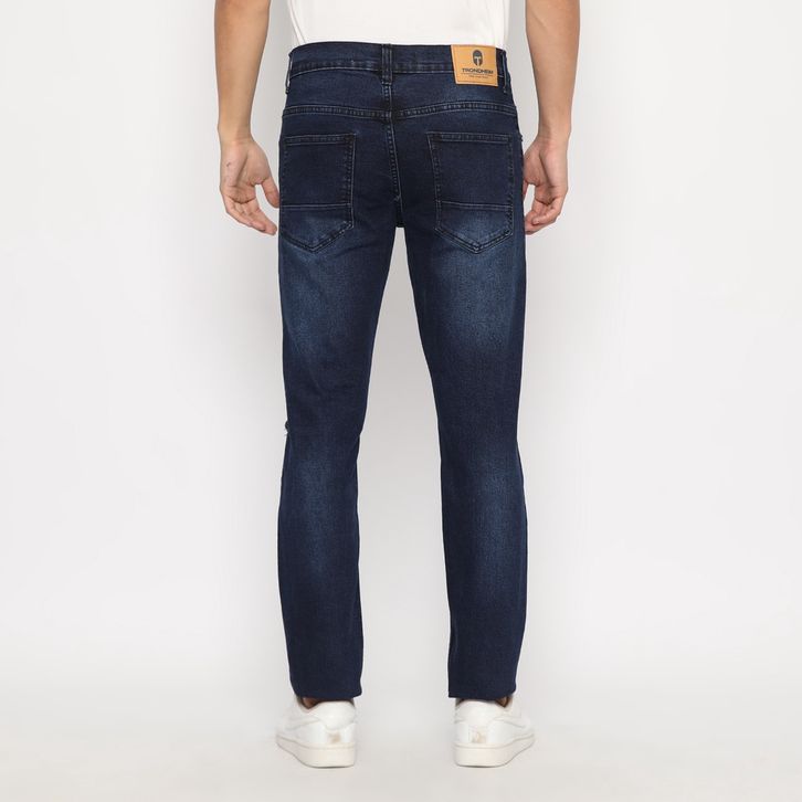 Celana Jeans Cowok Panjang Celana Jeans Pria Whisker Ripped Gunes Dark Blue