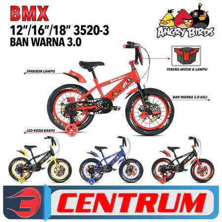Sepeda Roda 3 Anak Cowok Sepeda Anak BMX 16 18 FOSTER ANGRY BIRD musik lampu Ban jumbo 2.50 anak 4-8 th Bonus botol air